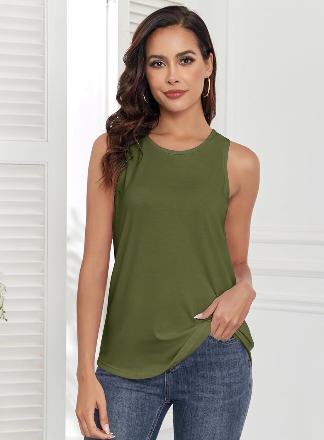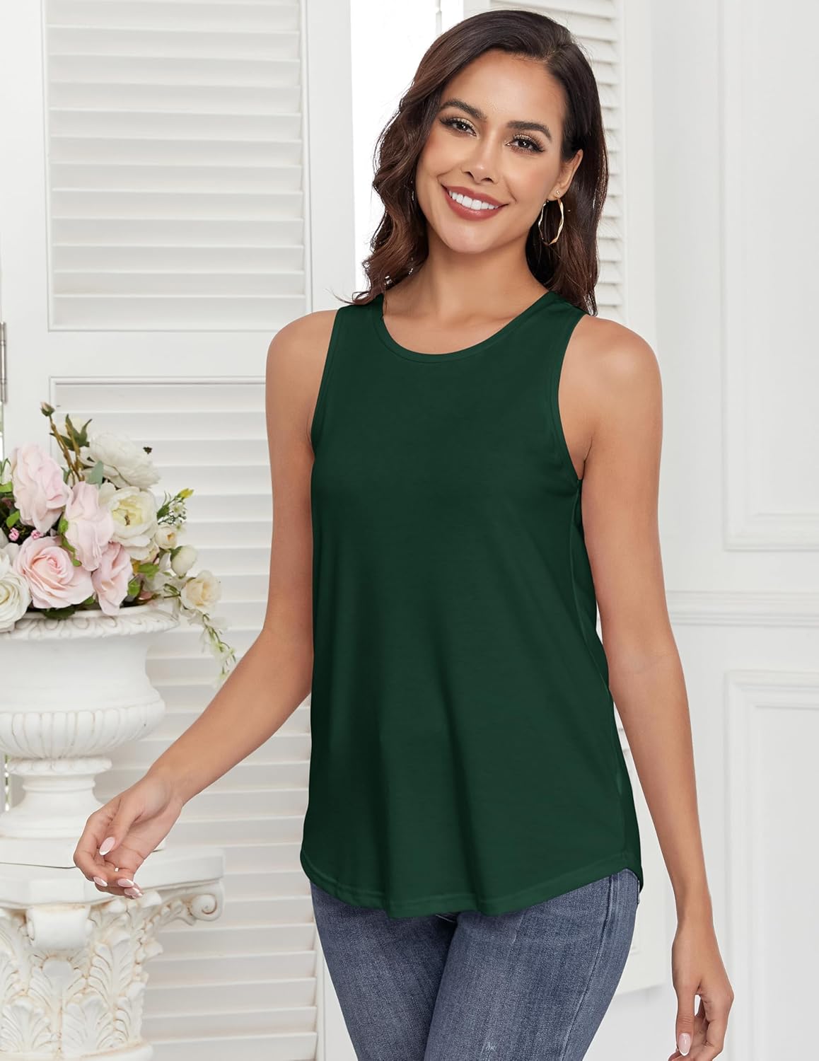 Women Crewneck Flowy Loose Fit Tank Top Sleeveless Summer Tops Shirts